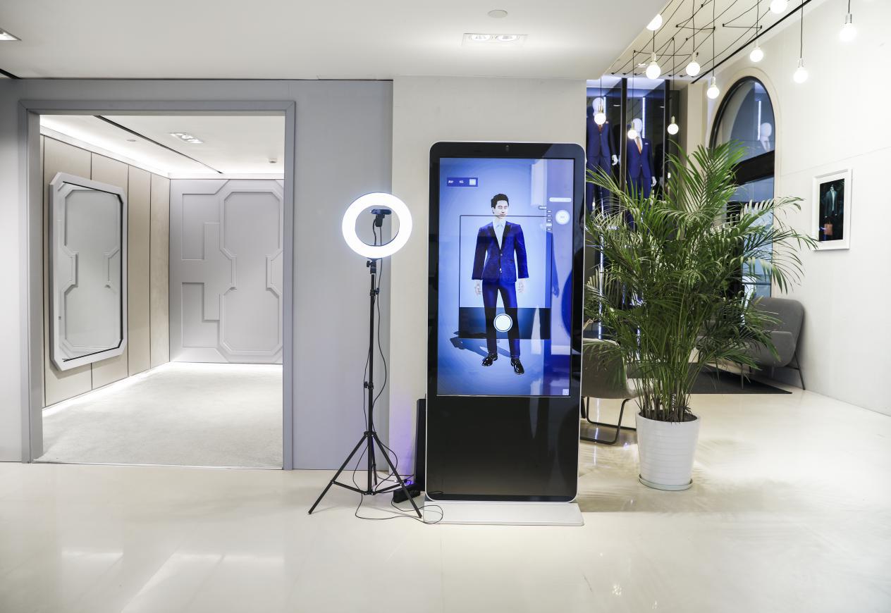 3D measuring The 3D measuring project is one of the important means of Youngor's smart marketing. The company will jointly develop human body scanning equipment with Sant Technology from the beginning of this year. At present, the Youngor 3D measuring scanner has been developed, with scanning accuracy of the scanner less than 1cm (hardware error 0.1cm). In combination with artificial intelligence, it studies the grading allowance of the Hong Bang Tailors. The measurement results are directly transferred to the factory, with an accuracy higher than other devices on the market.